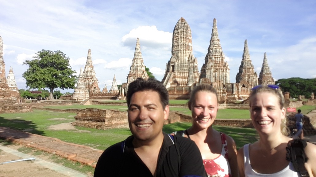 Eenmaal in de bus zat ik als enige buitenlander helemaal achteraan voor de meeste beenruimte. De busreis zou 2 uur duren waarna ik in Suphanburi een overstap moest maken om in Ayutthaya zou eindigen. Echter op het moment dat de bus wilde wegrijden sprongen er twee Nederlandse dames, Miranda en Lonneke, in de bus met dezelfde plannen. Na een poosje gebabbeld te hebben bleek dat onze reisschema vrijwel hetzelfde was op een extra nacht in Ayutthaya na. Ze wisten me te vertellen dat je d.m.v. een tuktuk alle bezienswaardigheden van Ayutthaya binnen een paar uur gezien kan hebben. Van het één komt het ander en zo besloot ik de dag met hun te spenderen om zo de kosten laag te houden en de vele tempels en ruïnes te bezoeken die Ayutthaya te bieden heeft.